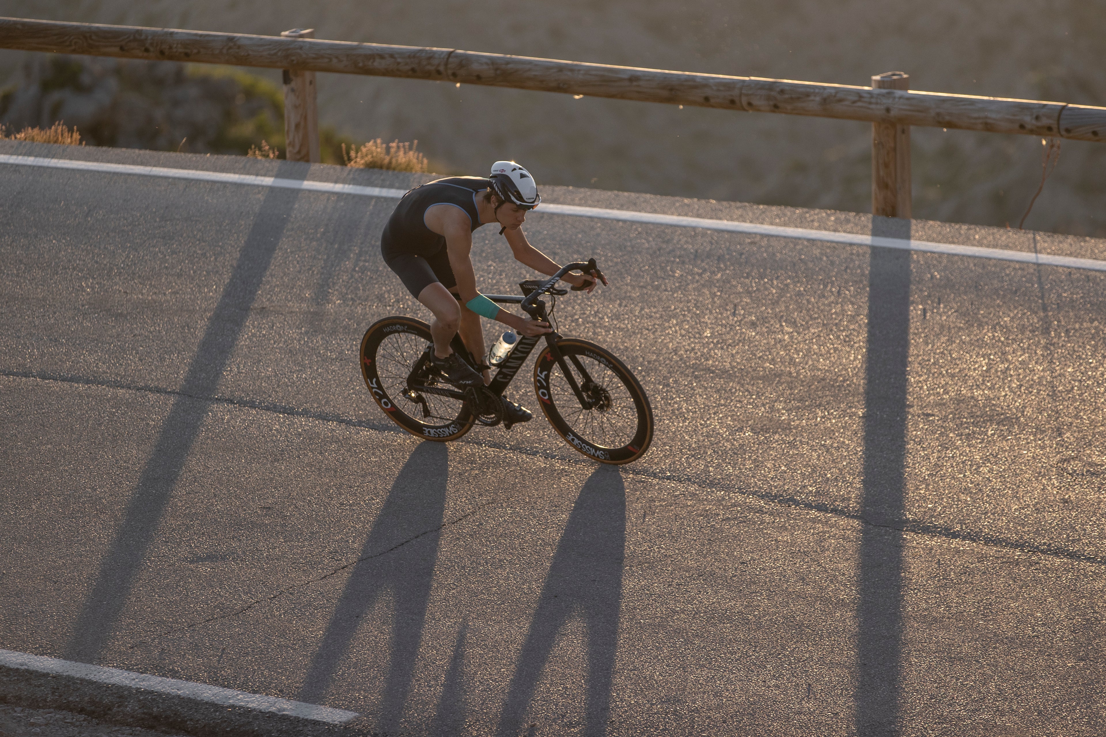 Závodní kombinéza má zip na zádech a úzkou antibakteriální vložku pro cyklistickou část triatlonu.